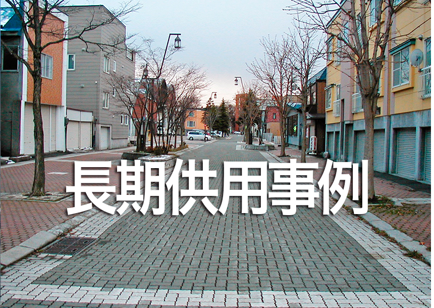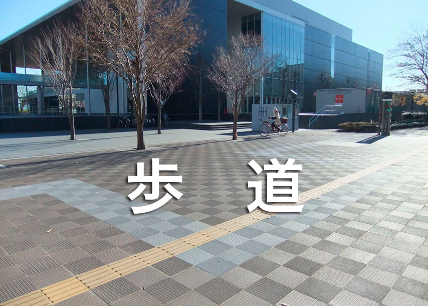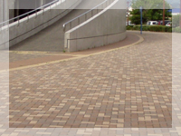 舗装ブロックはさまざまな場所で利用されています。 舗装ブロックの施工例として「車道」「歩道」「自転車歩行者道」「駐車場・停車場」「公園・広場」「外構」「20年以上の長期供用事例」やその他の施工例をご覧いただけます。