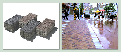 また、ポーラスコンクリートを使用して平板に透水性を持たせたもの、保水材混入や微細な空隙の多孔質体とすることなどにより保水性を付与したもののも開発されています。