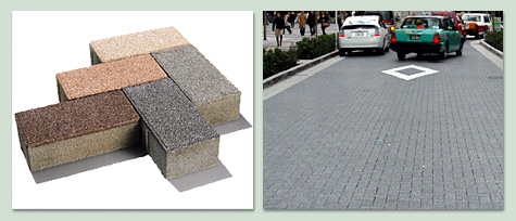 インターロッキングブロックインターロッキングブロックとは、「かみ合わせ効果の発揮できる舗装用コンクリートブロック」であり、「高振動加圧即時脱型方式により製造されるもの」です。