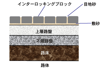 一般的なインターロッキングブロック舗装の構造、各層の役割
